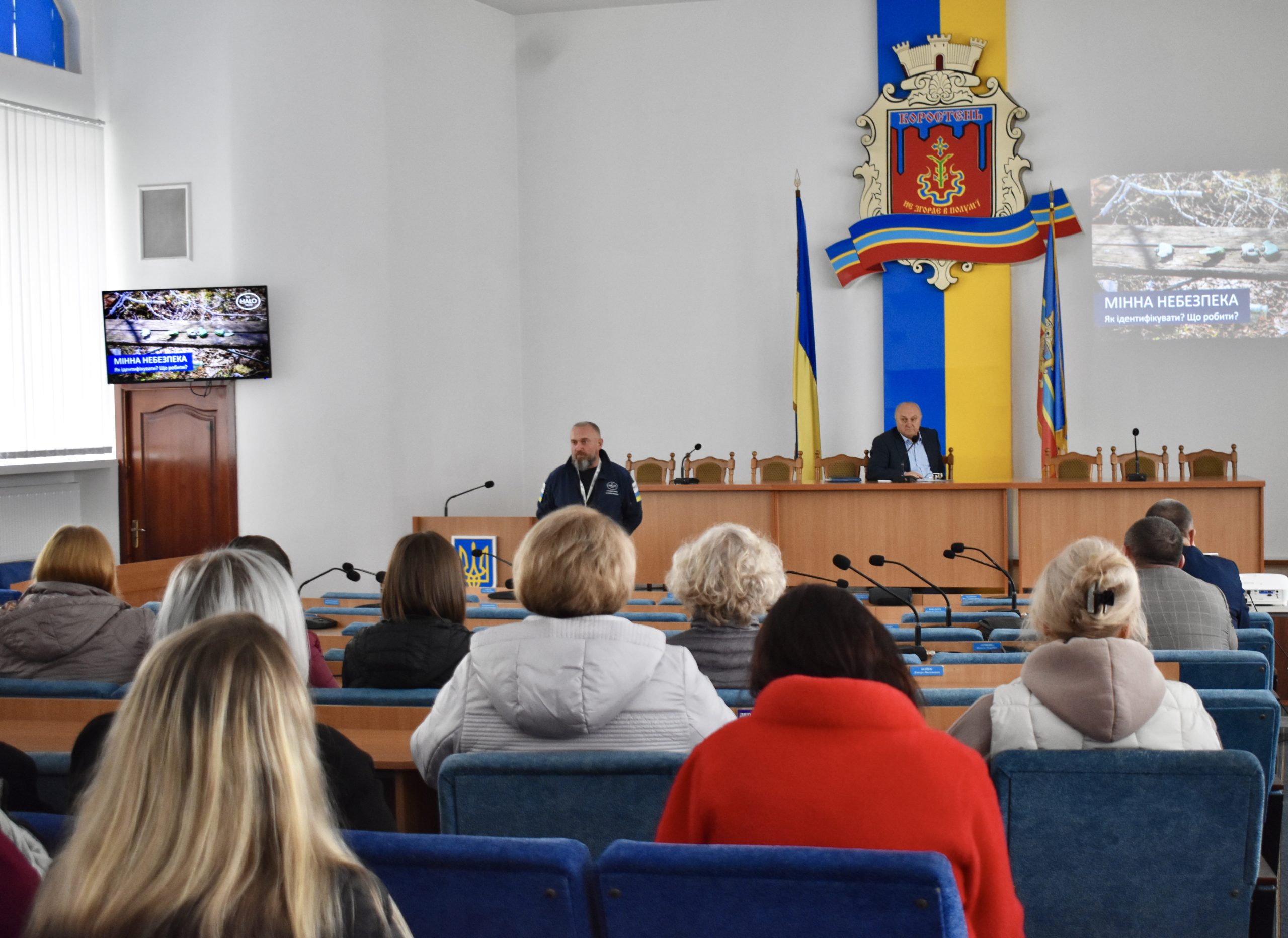 ↪️Сьогодні в сесійній залі Коростенської міської ради для працівників виконавчого комітету, структурних підрозділів та комунальних установ було проведено інформаційну сесію на тему «Навчання ризикам, пов’язаним із вибухонебезпечними предметами».