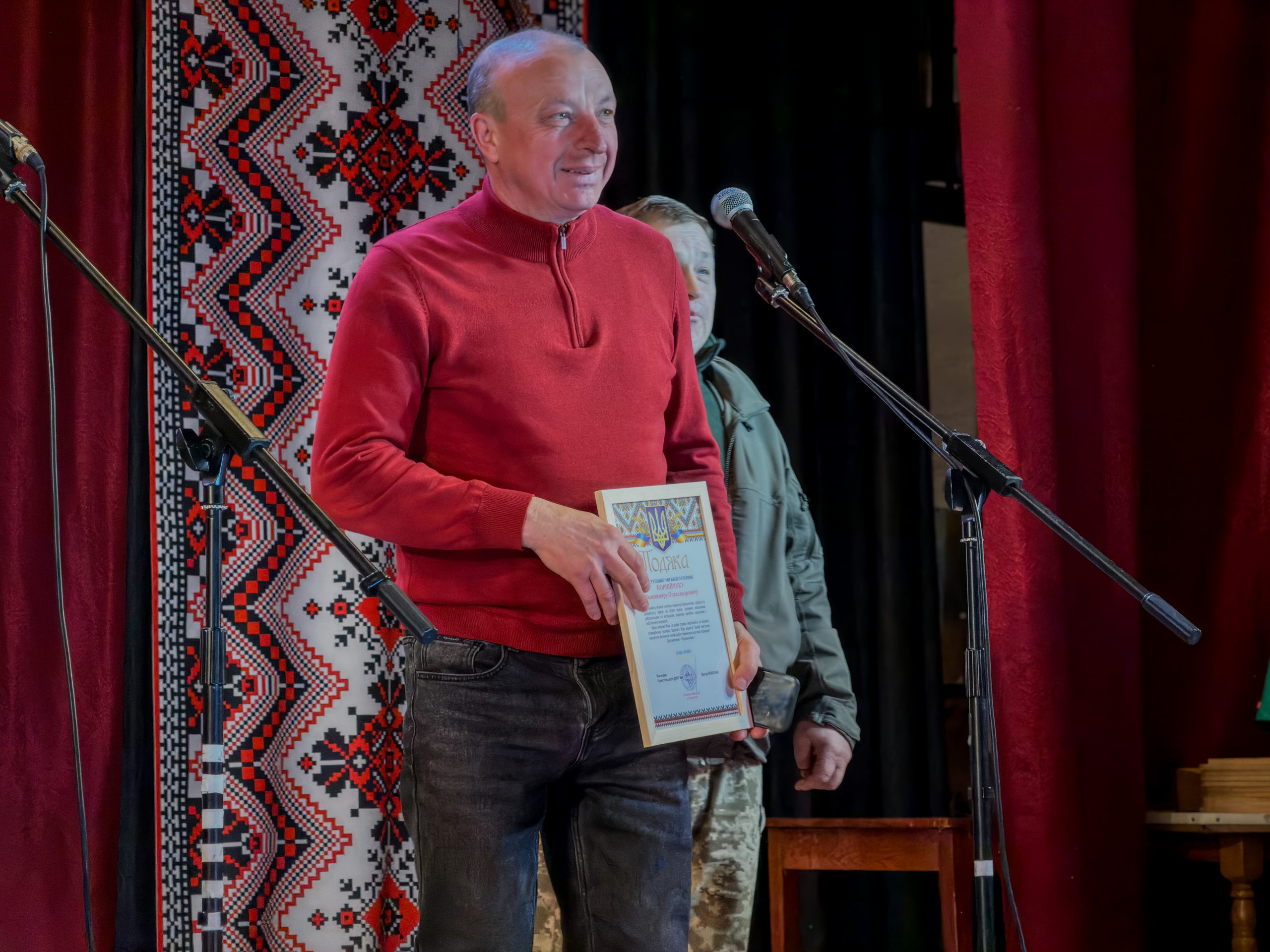 Теплі слова підтримки та вдячності цього дня також прозвучали від народного депутата України Володимира Арешонкова, представників Коростенської районної військової адміністрації, силових структур та військових формувань. Зокрема, привітали присутніх полковник Юрій Бондаренко (регіональне управління «Північ»), полковник Сергій Костюк (115-та окрема бригада територіальної оборони), полковник Денис Коровченко та його заступник Віктор Князєв (55-й окремий полк зв’язку), капітан Олександр Марітко (тактична група ППО «Житомир»). До заходу долучилися й представники громадських та волонтерських ініціатив, зокрема генерал-майор Віталій Присяжний-Жилко, Ігор Сиромятников, Руслан Дідківський голова ГО “Асоціація “Рада керівників”, Олександр Білошицький представник Коростенського осередку ГО “Захист Держави “, командир ДФТГ Коростенської МТГ №1 Віктор Плахонін та начальник штабу Андріан Левицький.