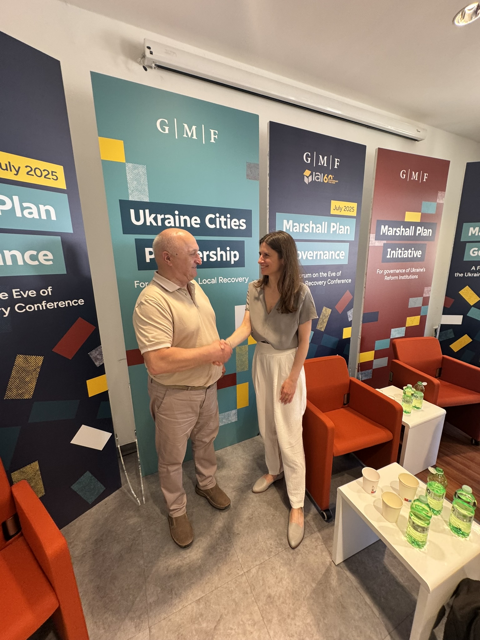 В рамках Конференції з відбудови України, яка проходила 10-11 липня в Римі, GMF провели два форуми, на яких були пристуні Володимир Москаленко з начальницею відділу міжмуніципального та міжнародного співробітництва Аліною Семененко. На дводенних форумах зустрілись з представниками міжнародних та національних організацій, які допомагають українським громадам у відбудові та відновленні. Серед них, Інститут економічних досліджень та політичних консультацій (IER), Генеральний директорат регіональної та міської політики Європейської Комісії (DG REGIO), Агентство відновлення України, ГО “Міські реформи” та ін.
