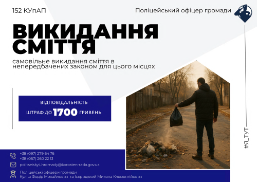 Поліцейські офіцери громади повідомляють: турбота про громаду починається з відповідальності!