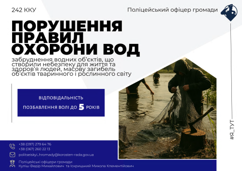 Поліцейські офіцери громади Куліш Федір Михайлович та Іскрицький Микола Клементійович підготували серію інфографік про найпоширеніші порушення та відповідальність за них. Ця інформація — для мешканців громади, аби кожен знав прості правила, що допомагають зберігати порядок.