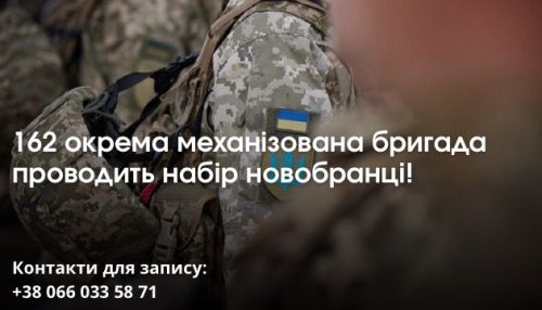 162 окрема механізована бригада проводить набір новобранців! Ми шукаємо вмотивованих, рішучих і патріотичних людей, які готові стати до лав Сил оборони.