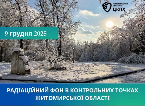 ДУ «Житомирський обласний центр контролю та профілактики хвороб МОЗ України» повідомляє, що станом на 09.12.2025р. було проведено щоденний дозиметричний контроль міст Житомирської області.