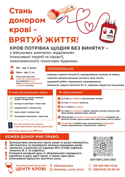 Стань донором крові – ВРЯТУЙ ЖИТТЯ!