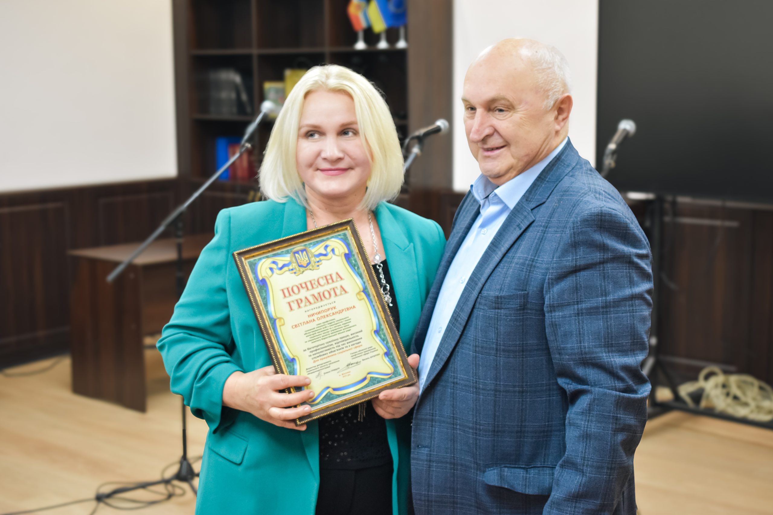🏅 Під час заходу кращих представників галузі було відзначено Почесними грамотами, Подяками міського голови, виконавчого комітету Коростенської міської ради, а також нагородами Департаменту соціального захисту населення Житомирської ОДА, обласної профспілки працівників соціальної сфери України та народного депутата України.
