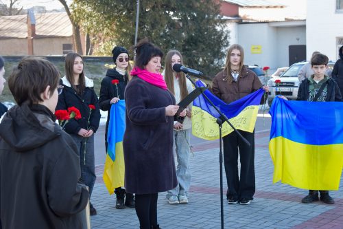 Біля Міського палацу культури ім. Т. Г. Шевченка учні Коростенського ліцею №12 зачитували вірші та знакові рядки Шевченка, вшановуючи його як історичну постать і як моральний орієнтир для багатьох поколінь українців. До події долучилися представники громадськості та виконавчих органів — присутні поклали квіти до пам’ятника.