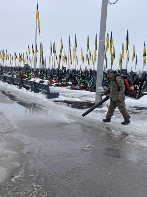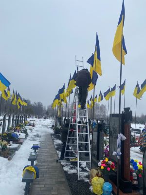 - Прибирання снігу та заміна прапорів на Алеї військових поховань (кладовище по вул. І. Котляревського).