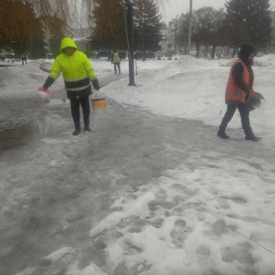 - Зимове утримання (заготівля протиожеледних матеріалів, прочищення зливової каналізації, прочищення та посипання автошляхів протиожеледними матеріалами по місту та СО).