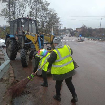 3. Прибирання листя по місту, прибирання спецтехнікою тротуарів та автошляхів міста,  прочистка автобусних зупинок, урн для сміття по місту, парків, прибирання закріплених за підприємством територій м. Коростеня.