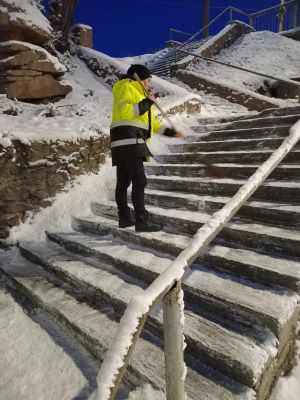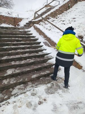 - Прибирання спецтехнікою тротуарів та автошляхів міста, прочищення та посипання протиожеледними матеріалами тротуарів по місту, прочистка автобусних зупинок, урн для сміття по місту, парків, прибирання закріплених за підприємством територій м. Коростеня.